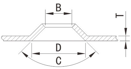 | 字號 | B尺寸 | C尺寸 | D尺寸 | 深度 | 沖力(AL) | 沖力(MS) | 沖力(SS) |