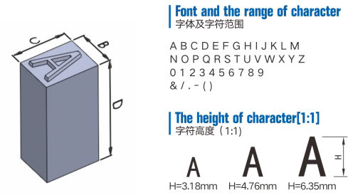 字號尺寸規(guī)定、字符深度、沖壓力(鋁、碳鋼板、不銹鋼)