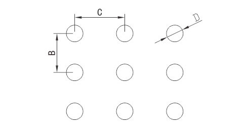 - 最小孔邊距(B-D)小于3.0mm時要間隔沖,且(B-D)≥2T